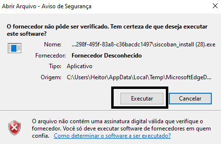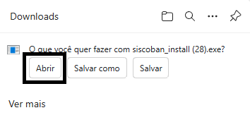 Ao clicar no botão acima, o Sistema será baixado automaticamente no seu navegador e você precisará executar (ou clicar duas vezes) no arquivo chamado “siscoban_install”.