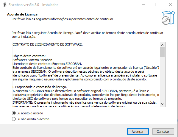 Depois de executar o Siscoban, você pode prosseguir com a instalação do Sistema avançando os passos: