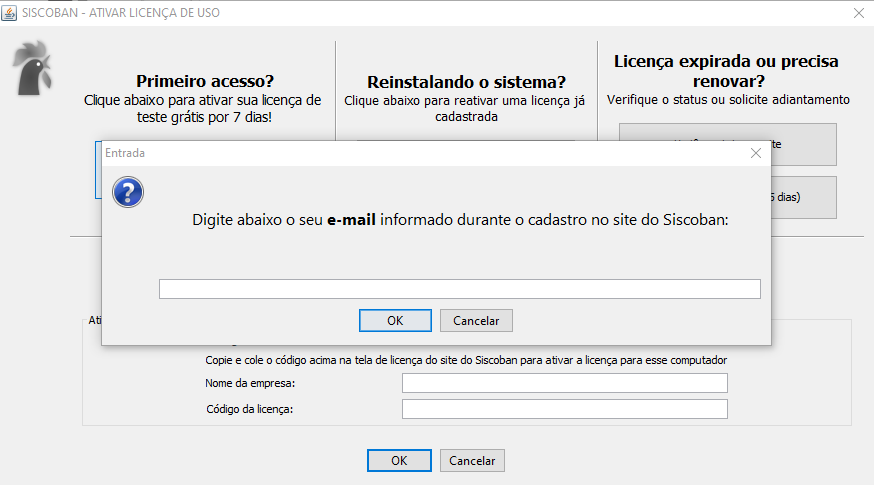 Depois de inserir o email e clicar em OK, o Siscoban estará liberado para uso gratuito!